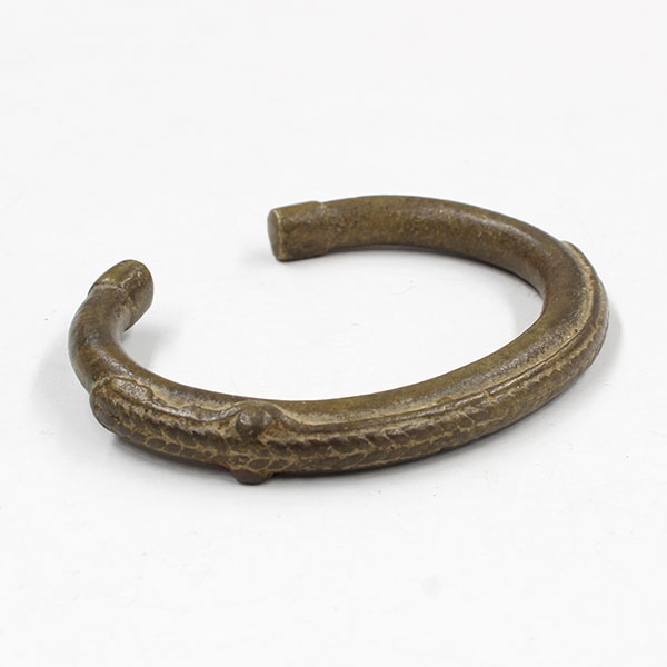 腕飾り 西アフリカ コートジボワール <セヌフォ> 上部にワニ絵柄 ブロンズ 参考文献〔E〕P53
