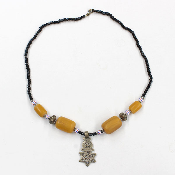 首飾り 東アフリカ エチオピア <アムハラ> 銀合金、模造コハク(合成樹脂)、ガラスビーズ