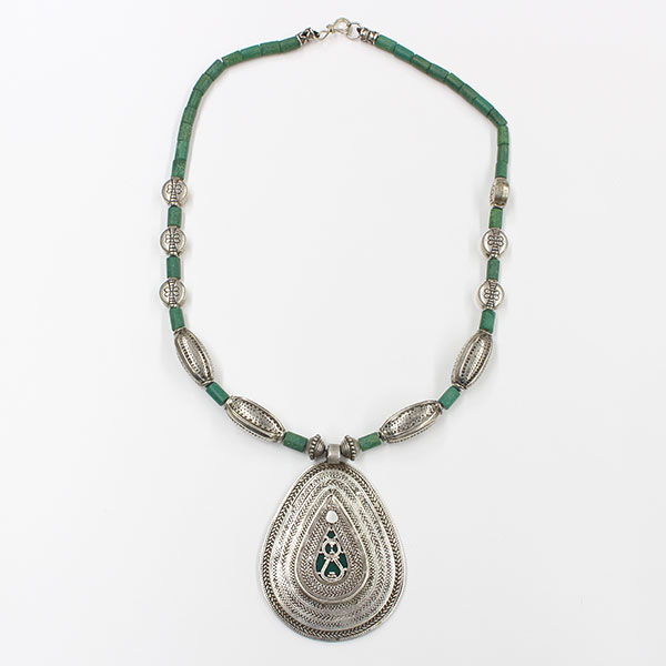 首飾り 中央アジアまたは西アジア 銀、色紙の上に板ガラス、合成樹脂(硬化処理)