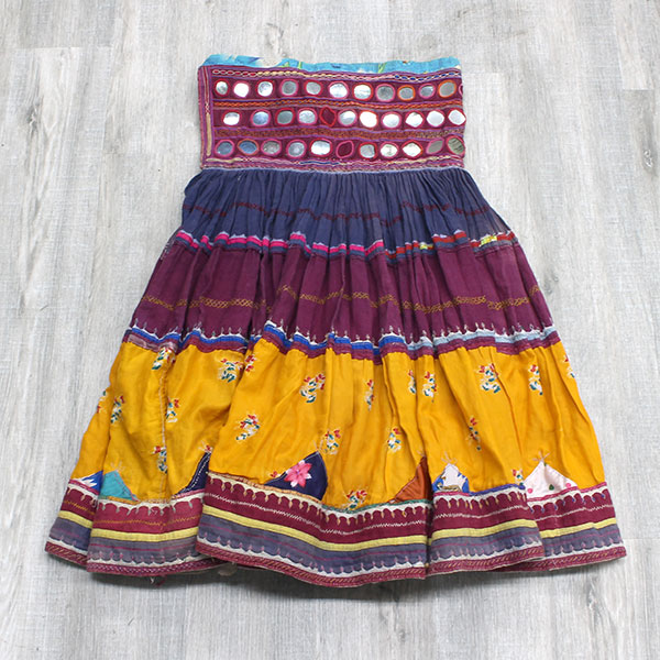 スカート インド・グジャラート他 <ラバー> スカート 女性用 木綿地刺繍、ミラー 参考文献〔SA〕BP82