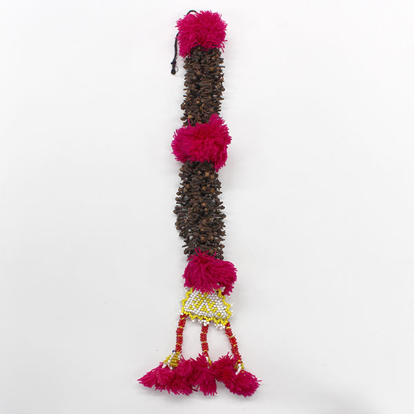 胸飾りまたは髪飾り パキスタンまたはアフガニスタン(西アジア) 女性用 丁字(グローブ)、ボンボン飾り(羊毛)、ガラスビーズ 参考文献〔WA〕AP39、〔CA〕BP118