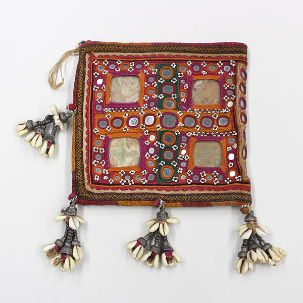 婚礼用刺繍袋 インド・アーンドラプラデーシュ <バンジャーラ→ランバディとも> 木綿刺繍、貝(宝貝) 参考文献〔SA〕FP102、103