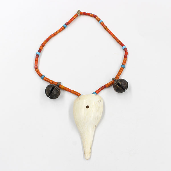 首飾り インド・ナガランド <ナガ> 鈴付き 貝(シャンク貝)、ガラスビーズ、真鍮またはブロンズ