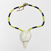 貝(シャンク貝)、ガラスビーズ、真鍮またはブロンズ