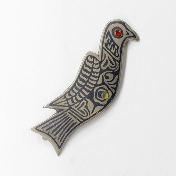 ヘア・クリップ アフガニスタン <ハザラ> 鳥モチーフ 女性用 洋白、ニエロ(黒金)、色ガラス