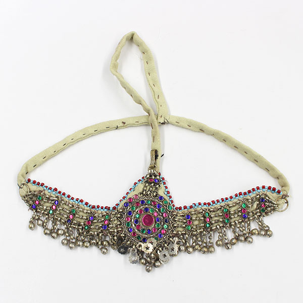 額飾り アフガニスタン <パシュトゥン> 女性用 洋白、色ガラス