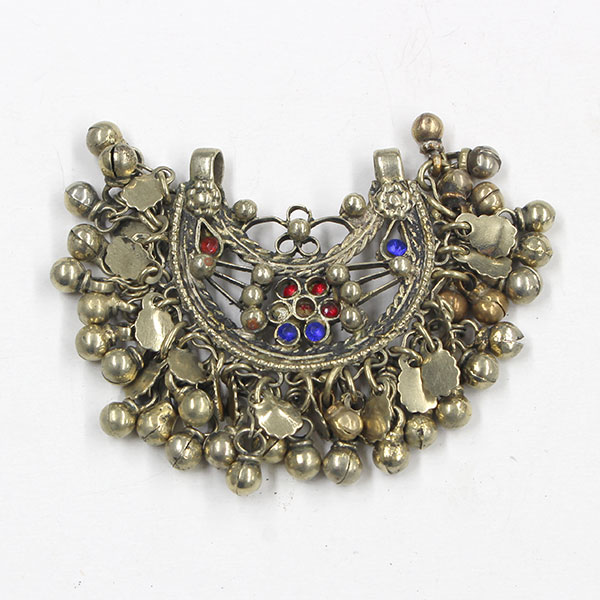 こめかみ飾り(片方) アフガニスタン <パシュトゥン> 女性用 洋白、色ガラス 参考文献〔WA〕AP24