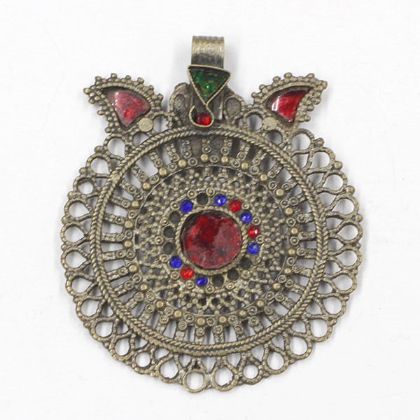 首飾り アフガニスタン <パシュトゥン> 洋白、板色ガラス、他